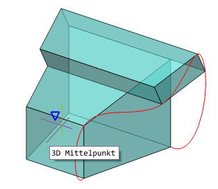 MittelPunkt - Schaltet den Mittelpunkt Objekt Fang um; fängt die Mitte von Linien, Bögen und anderen offenen Objekten und Kanten von 3D Volumenkörpern.