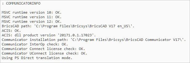 Der Befehl ist nur unter Windows verfügbar. Die Communicator-Version muss mit der Hauptversion von BricsCAD übereinstimmen.