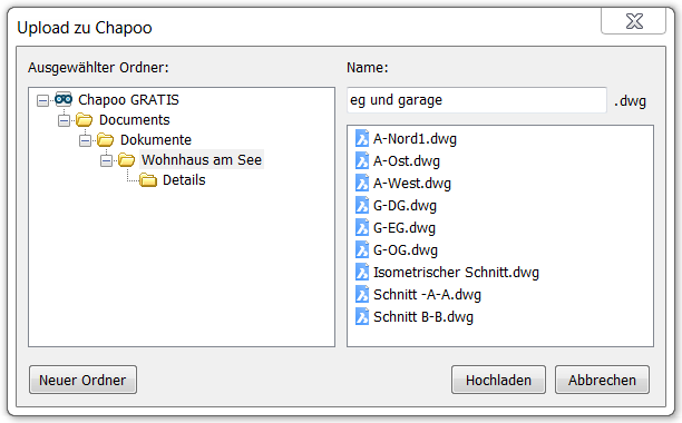 Lädt die aktuelle Zeichnung zu Chapoo hoch.