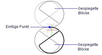 Spiegel den Block in einen der vier Quadranten. Bewegen Sie den Cursor, um die Lage des gespiegelte Blocks zu definieren; der Block wird über seinen Einfügepunkt gespiegelt.