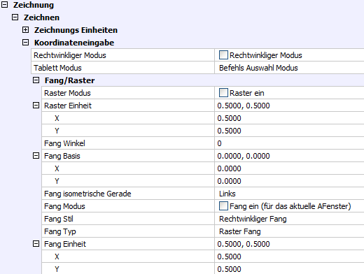 Setzt den Winkel für den Fang im aktuellen BKS. Dies wirkt sich ebenso auf die Anzeige des Rasters und den Orthomodus aus. |