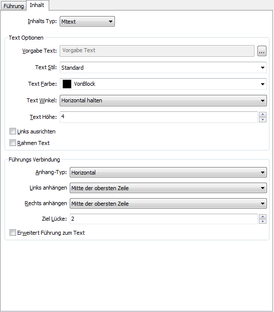Definiert, wie die Führung und der Mtext verbunden werden.