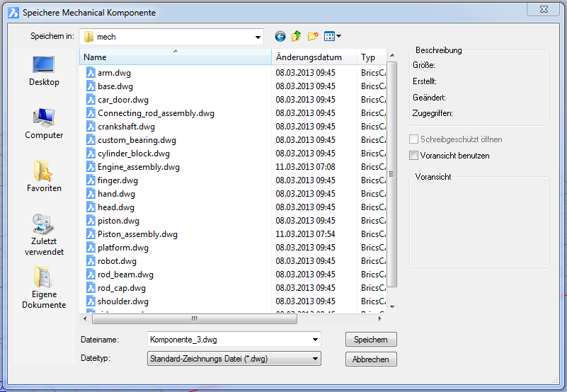BmEinfüge - fügt eine vorhandene mechanical Komponente in die aktuelle Zeichnung ein.