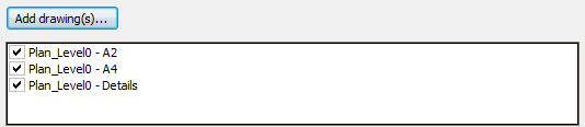 Klicken Sie auf die Schaltfläche Zeichnung(en) hinzufügen... und wählen Sie dann die Zeichnungen, deren Layouts Sie in den Dialog Wähle Zeichnungen importieren wollen. Die Layouts der gewählten Zeichnung(en) werden aufgelistet: