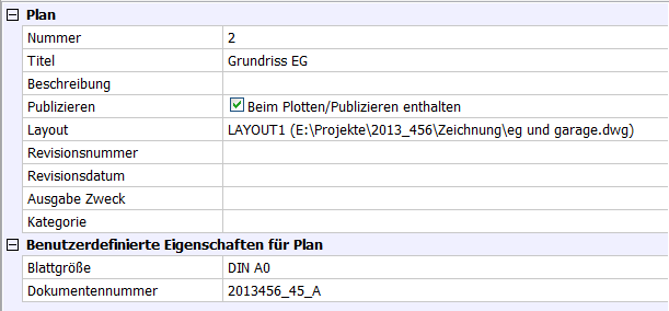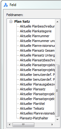 Plansatz Eigenschaften, Teilsatz Eigenschaften und Plan Eigenschaften können in Feldern benutzt werden. Siehe auch beim Befehl Schriftfeld nach.