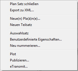 Rechtsklick auf einen Plansatz, um das Plansatz Kontextmenü zu öffnen.
