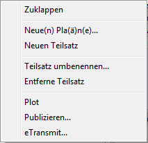Publzieren...: Startet den Befehl Publizieren und lädt alle Pläne im Teilsatz und den enthaltenen Teilsätzen.