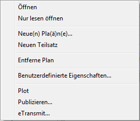 Rechtsklick auf einen Plan, um das Plan Kontextmenü zu öffnen.