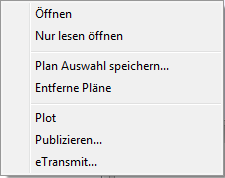 Publzieren...: Startet den Befehl Publizieren und lädt alle Pläne im Plansatz und den enthaltenen Teilsätzen.