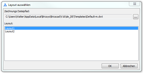 Layout: Klicken Sie auf die Schaltfläche Durchsuchen ( ), wählen Sie dann eine andere Zeichnung und/oder Layout.