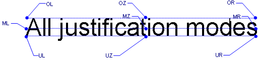 Zeigt alle Text Justierungs Modi an; und fordert Sie auf: Text: Stil/Ausrichten/Einpassen/MittelPunkt/MItte/Rechts/OL/OZ/OR/ML/MZ/MR/UL/UZ/UR/ - geben Sie eine Option ein.