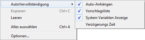 Stellt die AutoVervollständigen Optionen ein. Sehen Sie auch beim Befehl AutoVervollständigen nach. |