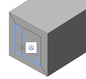 Ermöglicht die Extrusion durch eine Fläche eines Volumenkörpers zu begrenzen. Sie werden aufgefordert: Wähle Fläche oder 3D Volumenkörper zur Begrenzung der Extrusion: Bewegen Sie den Cursor über eine Fläche, klicken Sie, wenn die Fläche markiert ist.