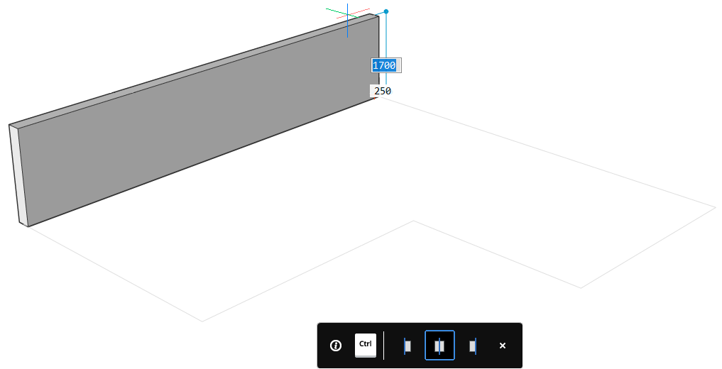 Der Hotkey Assistant wird angezeigt und zeigt die möglichen Ausrichtungsoptionen an. Drücken Sie die STRG-Taste, um durch die Optionen zur Wandausrichtung zu blättern.